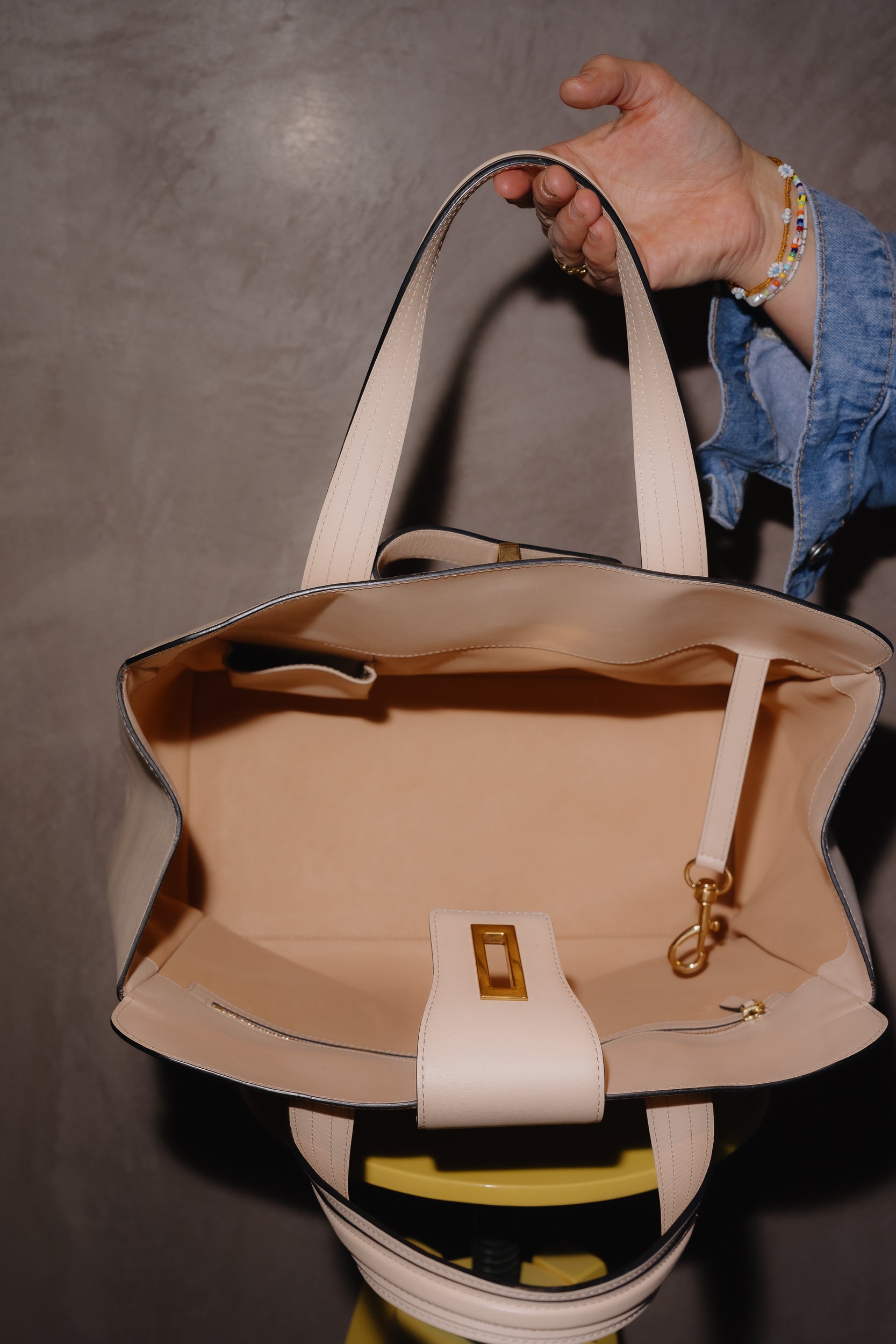 Perfect for carrying work essentials such as documents and a laptop, the Delvaux Lagon Cadence Simplissime tote in soft nude combines practicality with elegance. Spacious and structured, it maintains a refined and polished look while offering room for everything you need for your day.