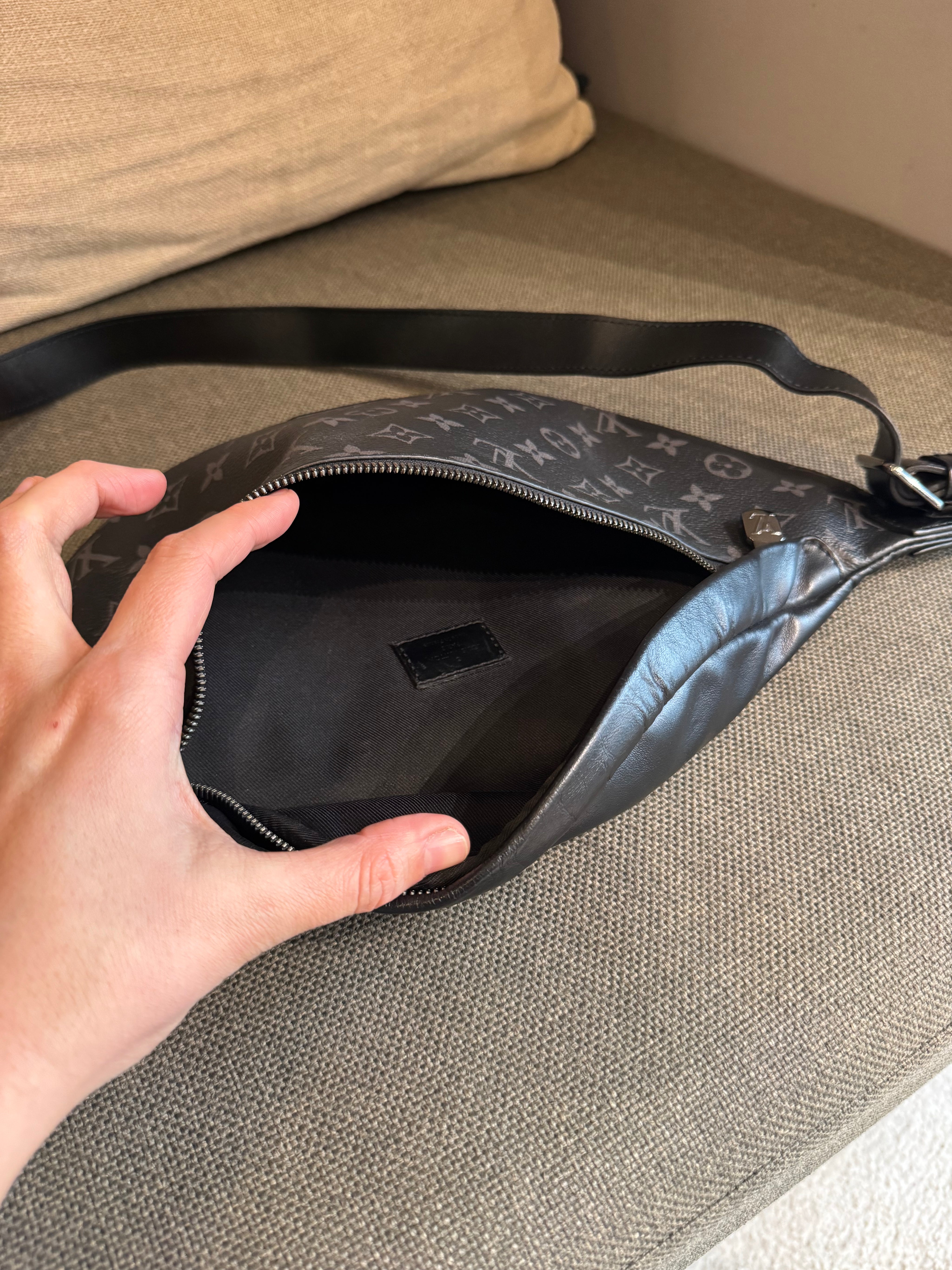 This Louis Vuitton Monogram Bumbag GM in black canvas with leather and silver hardware is super stylish, unisex, and perfect for everyday use. Lightweight and ergonomic, it sits comfortably around the body, keeping all your essentials secure and easily accessible.